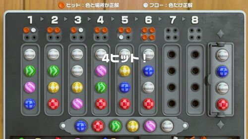 5個目。 まず最初、タイトルの駒っぽいのだけ見てスゴロクみたいなのかな~と思った。 とんでもない、推理ゲームでした。 正解の色と位置はどれか?4色全部当てましょう。というゲーム。対人戦ではないので難易度がなく、同色ありかどうかだけ。交互にやれ…