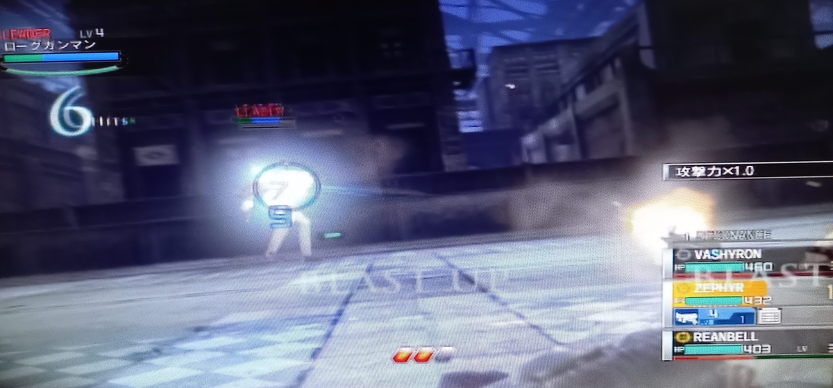マシンガンで攻撃すると敵のHPゲージが青くなり(暫定ダメージ)、ハンドガンで攻撃すると青い部分が削れる(確定ダメージ)。