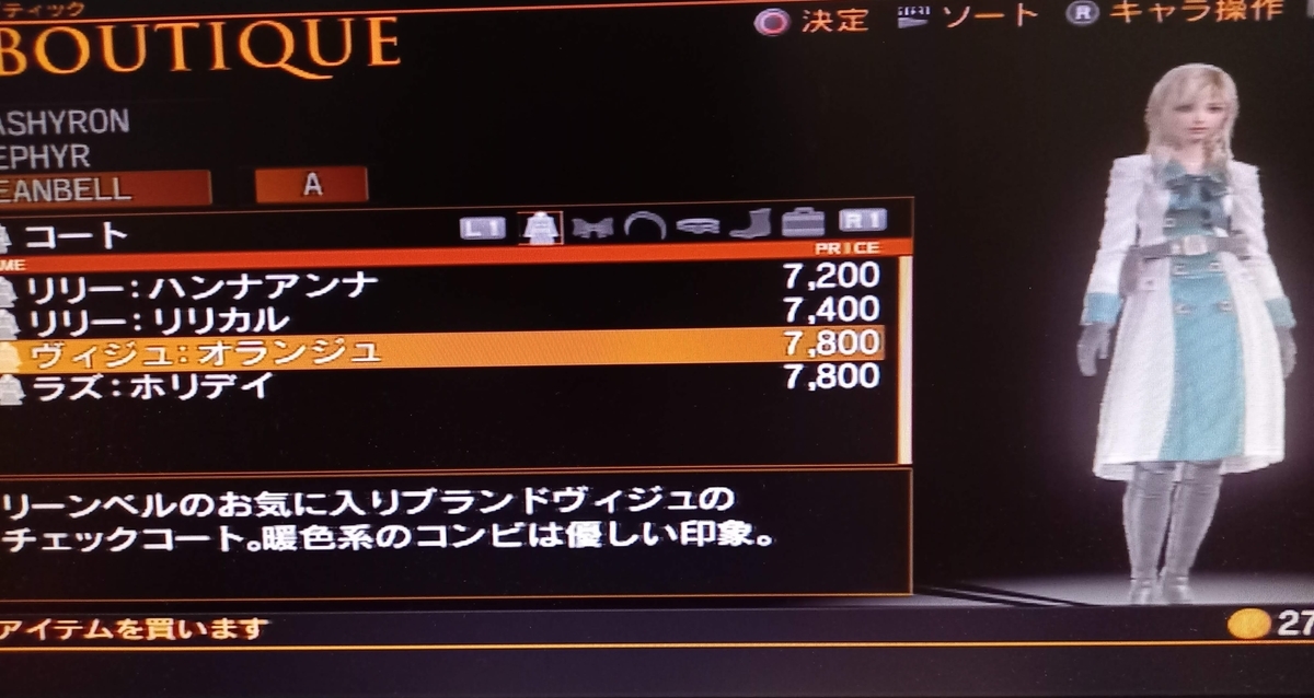とりあえず資金がそれほどあるわけじゃないので、リーンベルの一番安いコートを購入。